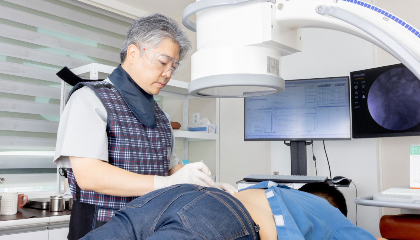 C-arm 영상 유도 하에 해부학적으로 복잡한 부위 치료의 안정성을 높일 수 있는 치료입니다.